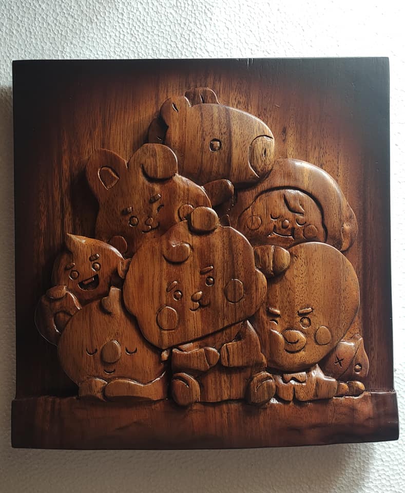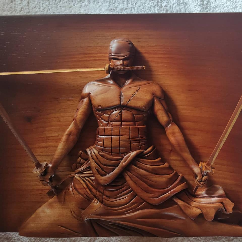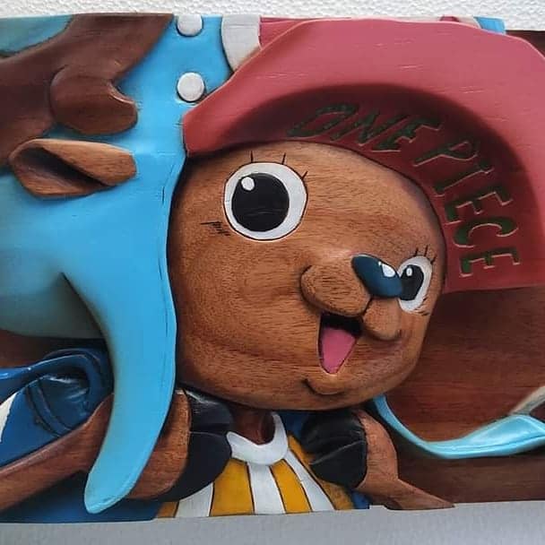 Among the One Piece characters that he made using wood are Zorro, Chopper, and Luffy.