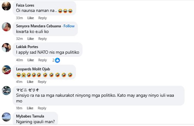 “As per CSWD and DSWD naa na trace four families in one house puro nang claim tanan ug totally. Magpahibawo lang ko nga ipauli raba to nila ang kuwarta. So if nahibawo mo nga kamo to ayaw ninyo igasto ang money kay di na nya mo maka claim sa umaabot pa nga payout nga basin mas dako pa.