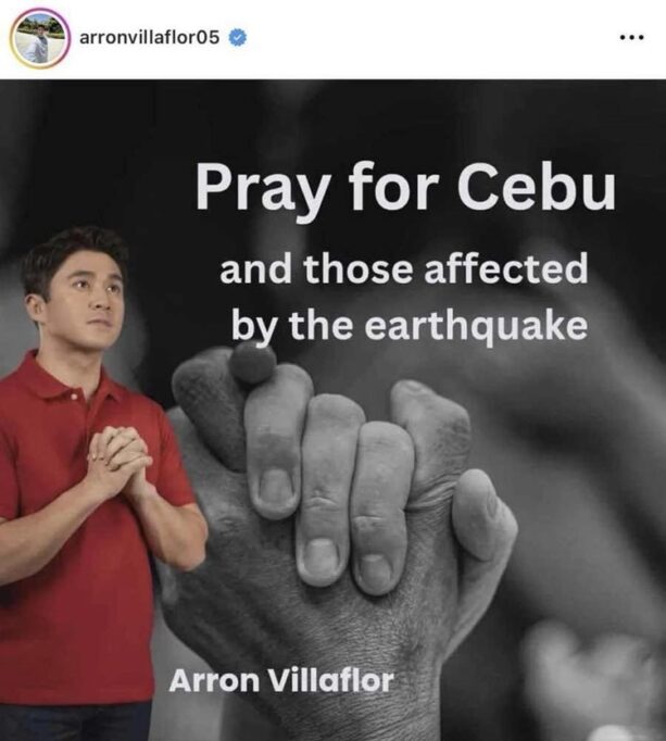 ARRON VILLAFLOR – The actor and Tarlac Board Member has apologized after getting criticized for his social media post showing sympathy for the victims of the recent earthquake in Cebu.
