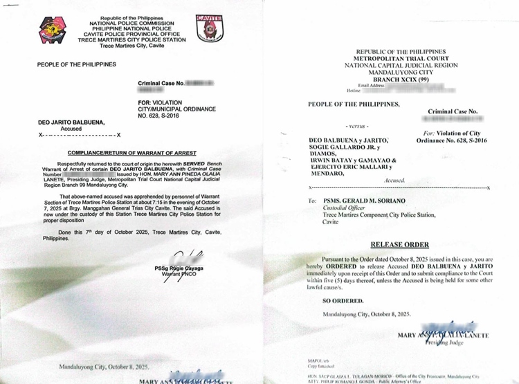 According to Diwata, police officers from the Warrant Section of Trece Martires, Cavite arrived at his home in General Trias on October 7 to serve a warrant of arrest issued by a Mandaluyong court for an individual bearing his name, Deo Jarito Balbuena. Without properly verifying the suspect’s true identity, the officers took him into custody. Fortunately, he had enough funds to post bail and secure his release. Shocked and confused, Diwata explained that he had never been to Mandaluyong, where the alleged violation occurred.