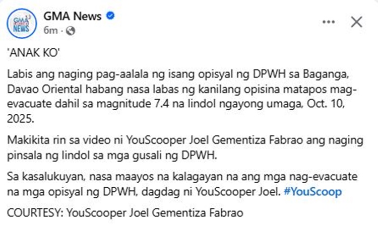 Recently, a Department of Public Works and Highways (DPWH) official in Davao Oriental shared his deep worry and fear as a powerful magnitude 7.4 earthquake shook their area.