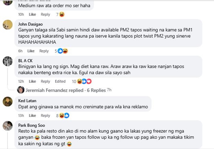 Many agreed that food establishments should ensure meals are freshly cooked and safe to eat, especially for dishes like chicken that require thorough cooking. Others pointed out that staff must handle customer complaints politely and efficiently to avoid misunderstandings.