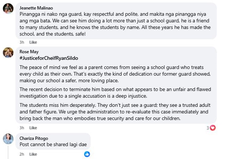 Parents and learners described Kuya Ryan as more than just a guard. He was someone who looked after students like a father, guiding them, reminding them about rules, and cheering them up when they felt down.