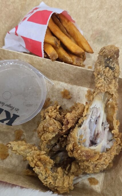 She shared that the fried chicken she received was unusually small, extremely dry, and unappetizing, despite requesting specific parts such as two thighs, a wing, and a leg. She emphasized that the chicken felt hard and underwhelming, even though it was ordered early in the morning.