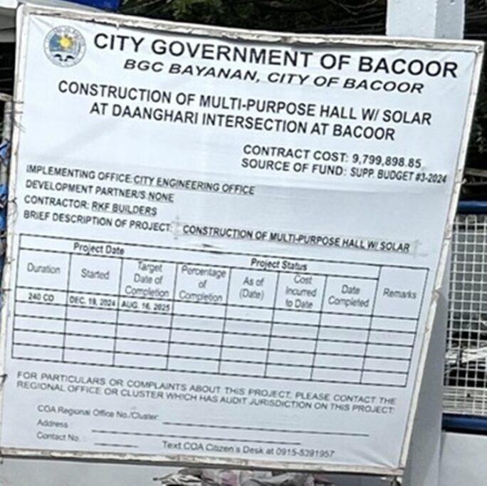 CAVITE – A P9.8 million multi-purpose hall in Bacoor has drawn widespread criticism online after photos of the project circulated on social media.