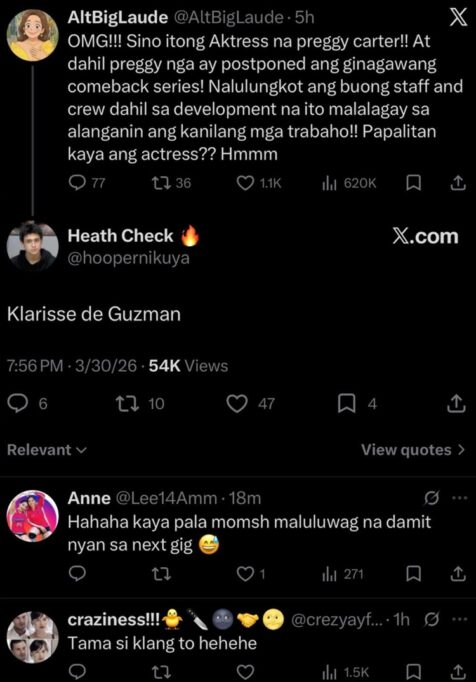 The issue started after a social media account shared a blind item about an unnamed actress who was allegedly pregnant, which supposedly caused the delay of her comeback project. The post suggested that the situation could affect production and even put the jobs of staff and crew at risk. Although no name was mentioned, some netizens quickly speculated and pointed to Klarisse as the person being referred to.