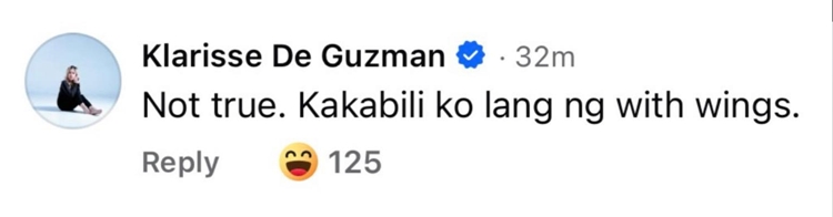 As the topic spread online, it eventually reached Klarisse. A Facebook page asked her directly to confirm or deny the rumor. She responded clearly and said it was not true. She even added a light and playful reply, showing that she was taking the issue calmly and was not bothered by the gossip.