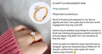 Woman Upset After Discovering Her Engagement Ring Was Only Bought by Her Boyfriend on Shopee for P299